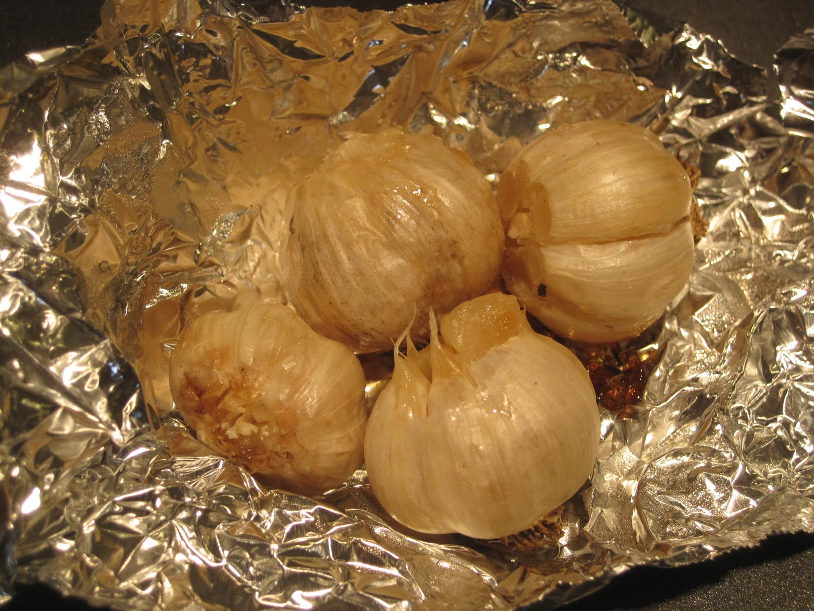 2. Add garlic. I like to use roasted garlic in my tomato sauce because it adds a really nice flavor but you could also use diced fresh cloves of garlic if you prefer. (Click here if you want to know how to roast garlic.) Believe it or not, even for this small batch of sauce, I roasted four bulbs of garlic and used them all! Delicious. Make extra and rub some roasted garlic on crostini to serve beside your pasta and sauce…