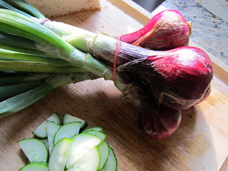 A panzanella salad is a salad with its origins in Tuscany – it is basically made with chunks of bread soaked in dressing (presumably to bring some stale bread back to life), tomatoes, onions, olives, even anchovies (but not in this recipe). As salads go, this one is just a tiny bit more labor intensive than others, but I promise you that the little bit of extra work will be worth it in the end.