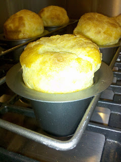 I recently found out that not everyone has had the pleasure of eating a popover! When I registered for my wedding (circa 2001) I had to have a popover pan. However, I think you can make popovers in oversized muffin tins as well. This recipe is so easy. The best part is that the top puffs up so much that you can pull off the top and serve a veggie inside (surprise!) or fill it with soup or just serve it all by its delicious self.